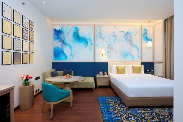 Svep in dig i mjuka badrockar efter att ha njutit av regnduschen. Mörkläggningsgardiner garanterar djup sömn, medan minibaren erbjuder kvällsgodis.