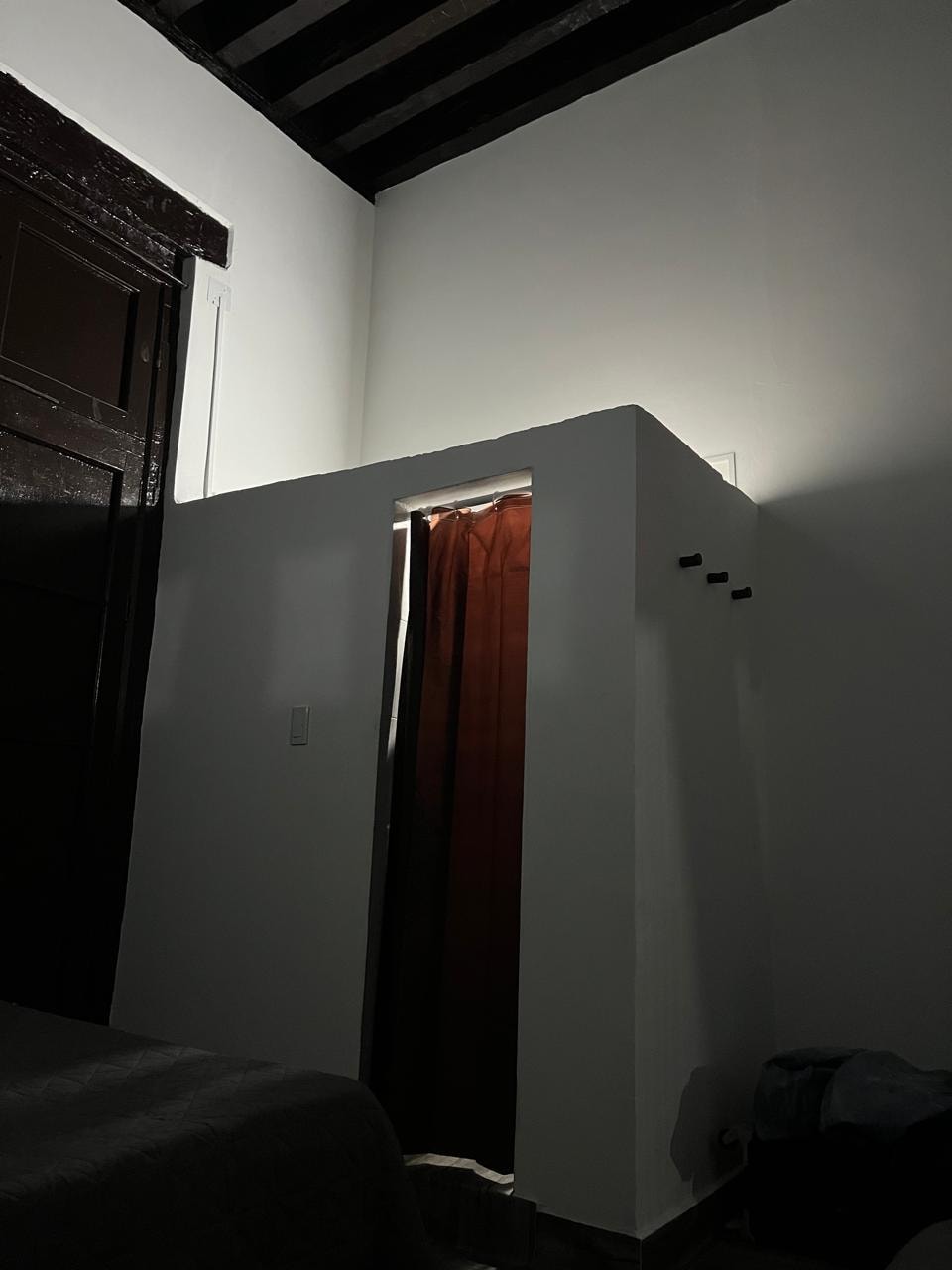 El baño no tenía puerta, solo una cortina de baño.