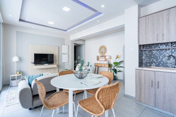 Har Beach Daze 1-BR Apt By Finikoudes Beach kök eller pentry?